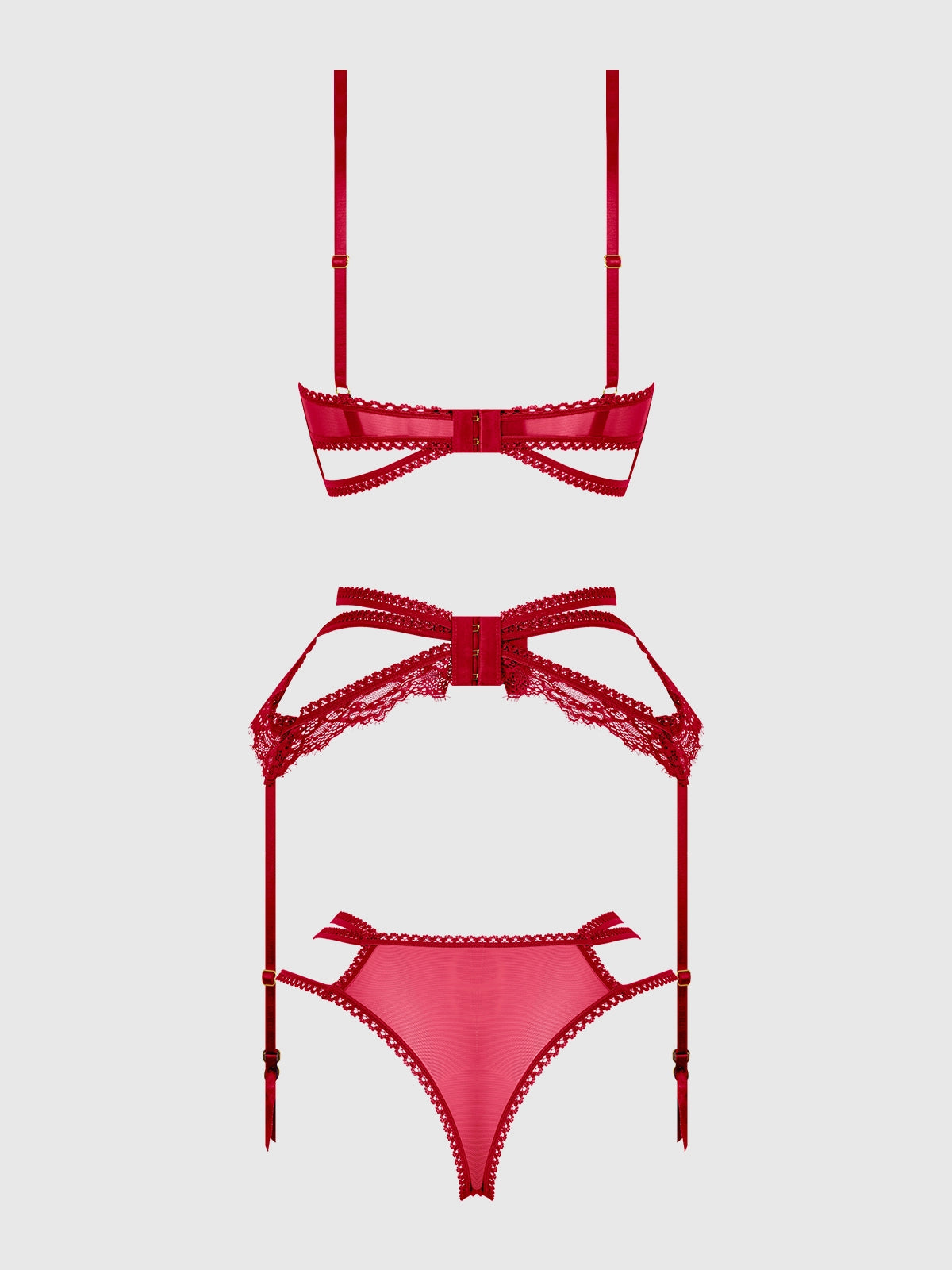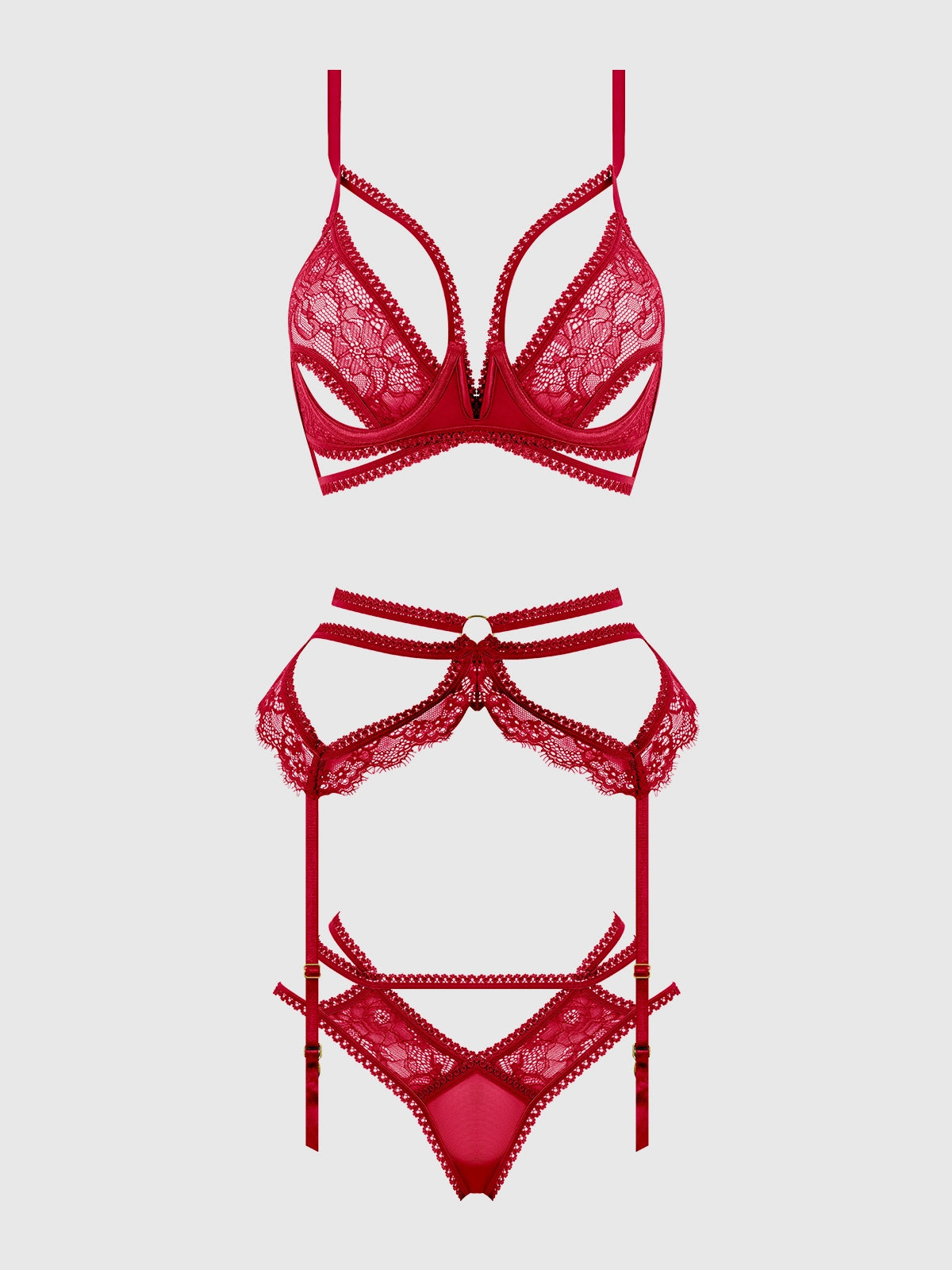 Bianca Strappy Lace Bra, Garter & Hipster Set
