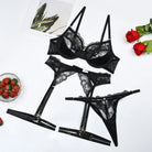 • 3-piece set: includes underwired bra, garter belt, and thong