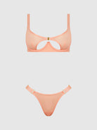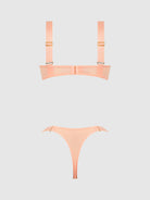 Experience a sleek, light catching aesthetic with this bra and thong set from Yvone. The convertible bra features a breakable clasp that transforms it into an eye-catching open-cup design. Wired for lift and detailed with wide adjustable straps for a seamless fit, this set with matching high-cut thong ensures you catch every shimmer in the room. Product Details: - Made of soft light-catching stretch mesh. - Wired bra with a convertible open-cup option with breakable center front clasp. - Matching high-cut thong. - Fit-adjustable shoulder and panty straps. - Soft, cotton panty liner.