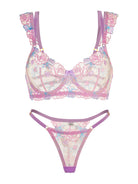 Purple Butterfly Bow Embroidered Flower Lingerie Set