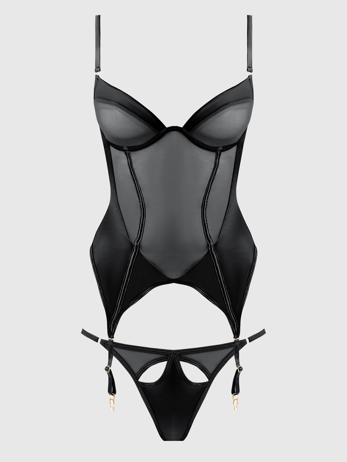 Yasmine Shimmer Mesh Slit Cup, Backless Teddy & Bralette Set