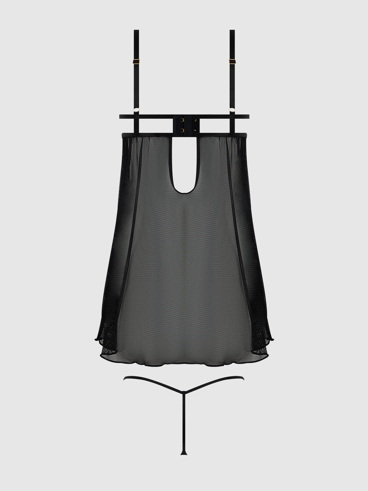 EVE LACE, CHAIN & MESH OPEN CUP BABYDOLL & G-STRING SET