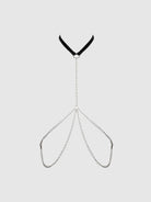 Strap into this Chain and Elastic Harness to add unexpected edge to any outfit or wear solo to drape seductively over your bare skin. Perfect for those who like to show and tell. Pair it with the Chain Cage Back Panty or go all in with the Bondage Hand Cuff Set for a night of bondage passion. Product Details: -Chains that drape across the chest. -Exposed open-cup bustier fit. -Soft elastic neck and back straps for a comfortable fit.
