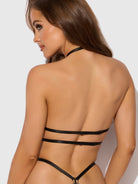 - Exposed open-cup bustier fit.