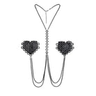 Transform your look and set the night ablaze with the Hearts on Fire Nipple Pasties & Choker Chain Set, designed to add a touch of sparkle and sultry elegance to any outfit—or lack thereof. Made with shimmering rhinestone heart pasties and a matching choker collar body chain, this ensemble elevates your confidence while celebrating your daring spirit.