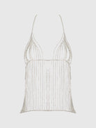 Take the plunge into temptation with the perfect body jewelry. Our Rhinestone Plunge Cami shows off your curves in its sparkly silhouette. Featuring a caged-style construction with deep neck plunge, this will leave him mesmerized and wanting more.