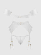 Step into a world of sensual romance with our Satin & Lace Strapless Bra, Garter Belt and Tanga Set. Intricate eyelash lace and sumptuous satin are beautifully sculpted to enhance your silhouette in this luxe three-piece set. The strapless bra and removable lace sleeves create a bold horizontal line while the dramatically curved garter belt keeps the whole look fluid. The lacy tanga completes the trio. This set is perfect for those who appreciate timeless elegance with a modern twist.