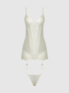 ROSALIE SATIN & EMBROIDERED LACE CHEMISE & G-STRING SET