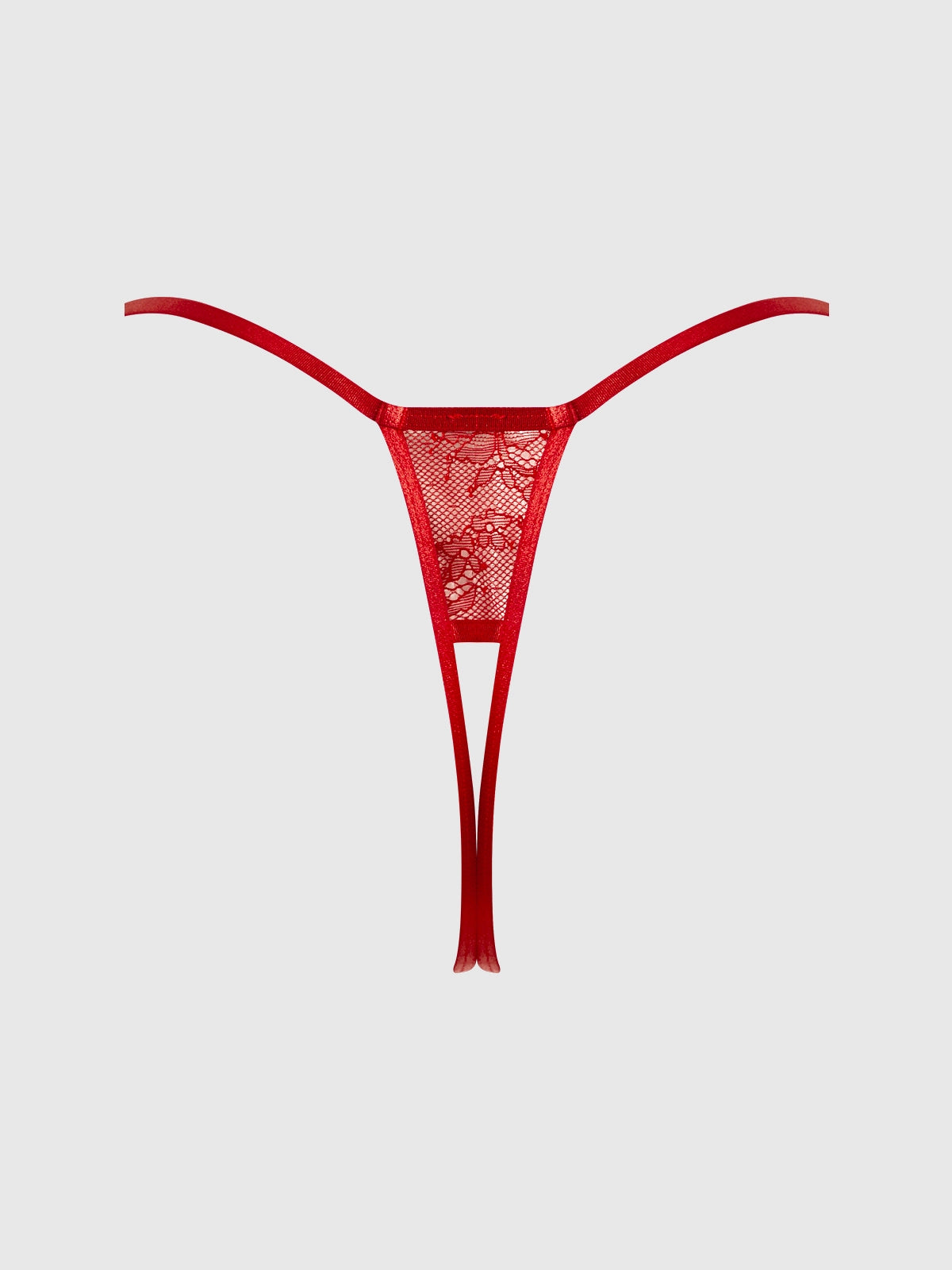 Rosalie Embroidered Lace & Mesh Crotchless Thong
