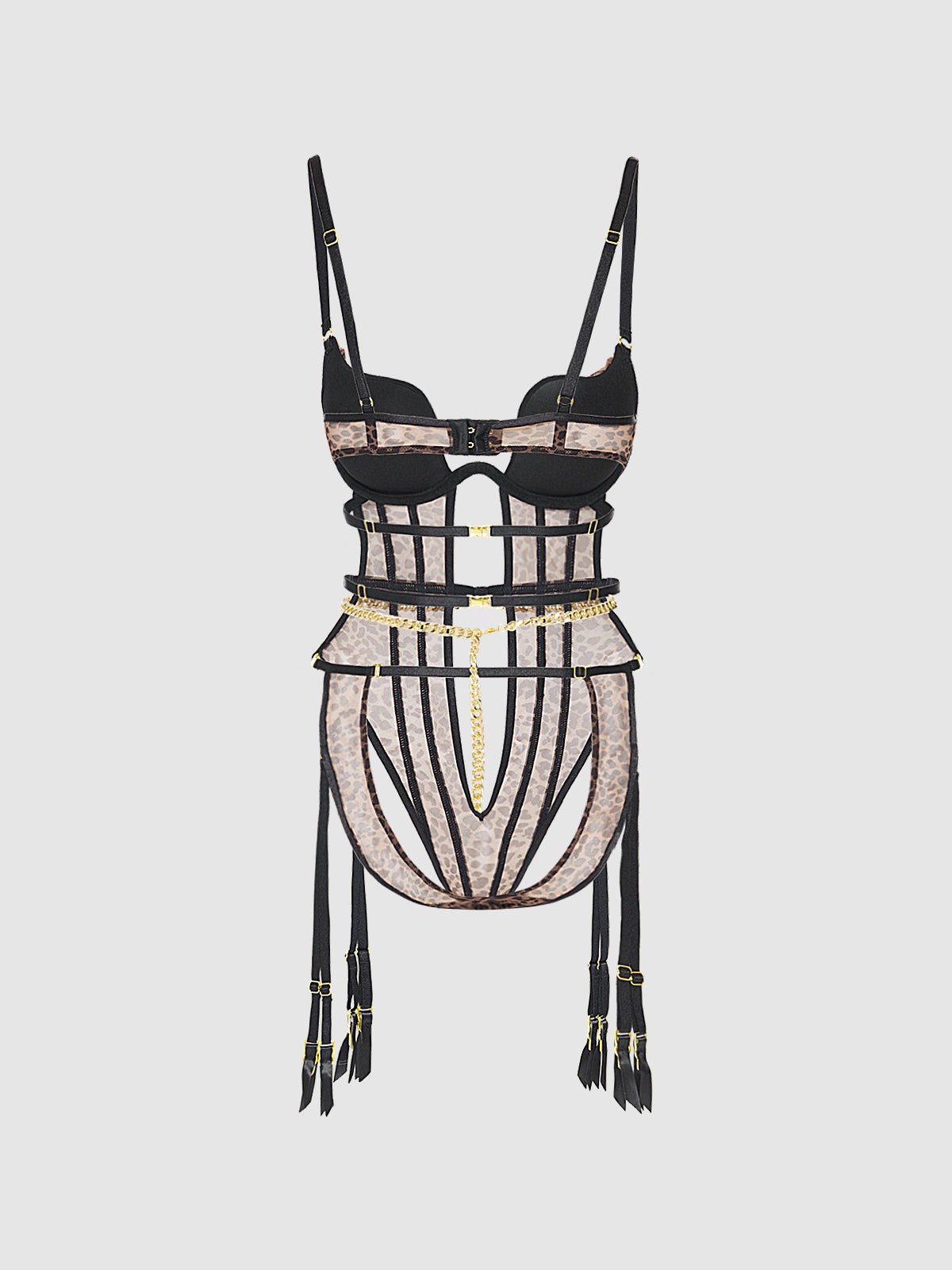 EVE LACE & CHAIN OPEN CUP & CROTCHLESS HARNESS TEDDY