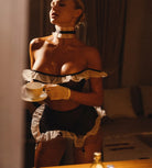 Turn up the heat with this Naughty Roleplay Maid Outfit, designed for the ultimate seductive fantasy. This sexy French maid lingerie set includes a sheer lace-trimmed top with adjustable straps for the perfect fit, a matching mesh thong, a flirty garter, and thigh bands to complete the look. Perfect for steamy roleplay, special nights, or as a daring bedroom surprise, this sultry maid costume will leave your partner wanting more. Get ready to take control and serve up some serious temptation. Available now for your next unforgettable night!