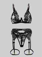 Black Embroidered Sexy Push Up Lingerie Set