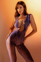 Unleash your inner temptress in this leopard fishnet bodystocking, featuring a daring open back and a wildly seductive sheer design. With its bold animal pattern and open upper silhouette, this piece is made to prowl, play, and provoke, no taming required.