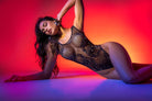 Dare to shine in this Snake Fishnet Bodysuit, where the sinuous snake design is traced with shimmering rhinestones for a hypnotic, light-catching effect. Crafted from sheer, curve-hugging fishnet, it features an open crotch for an unapologetically provocative edge. A statement piece that blends fierce detail with irresistible allure.