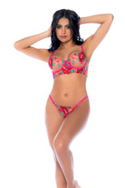 A must-have for the season, this stunning two-piece set is crafted in a floral embroidered mesh. The set includes an underwire bra with adjustable straps, ensuring the perfect fit and added support, complemented by a matching thong to complete the look.