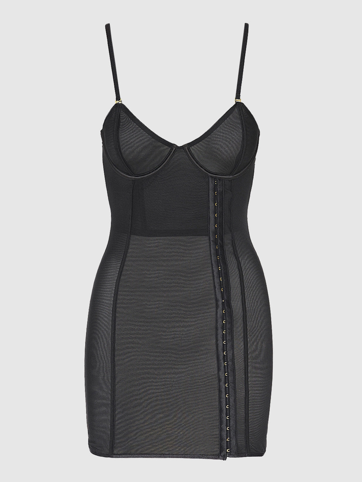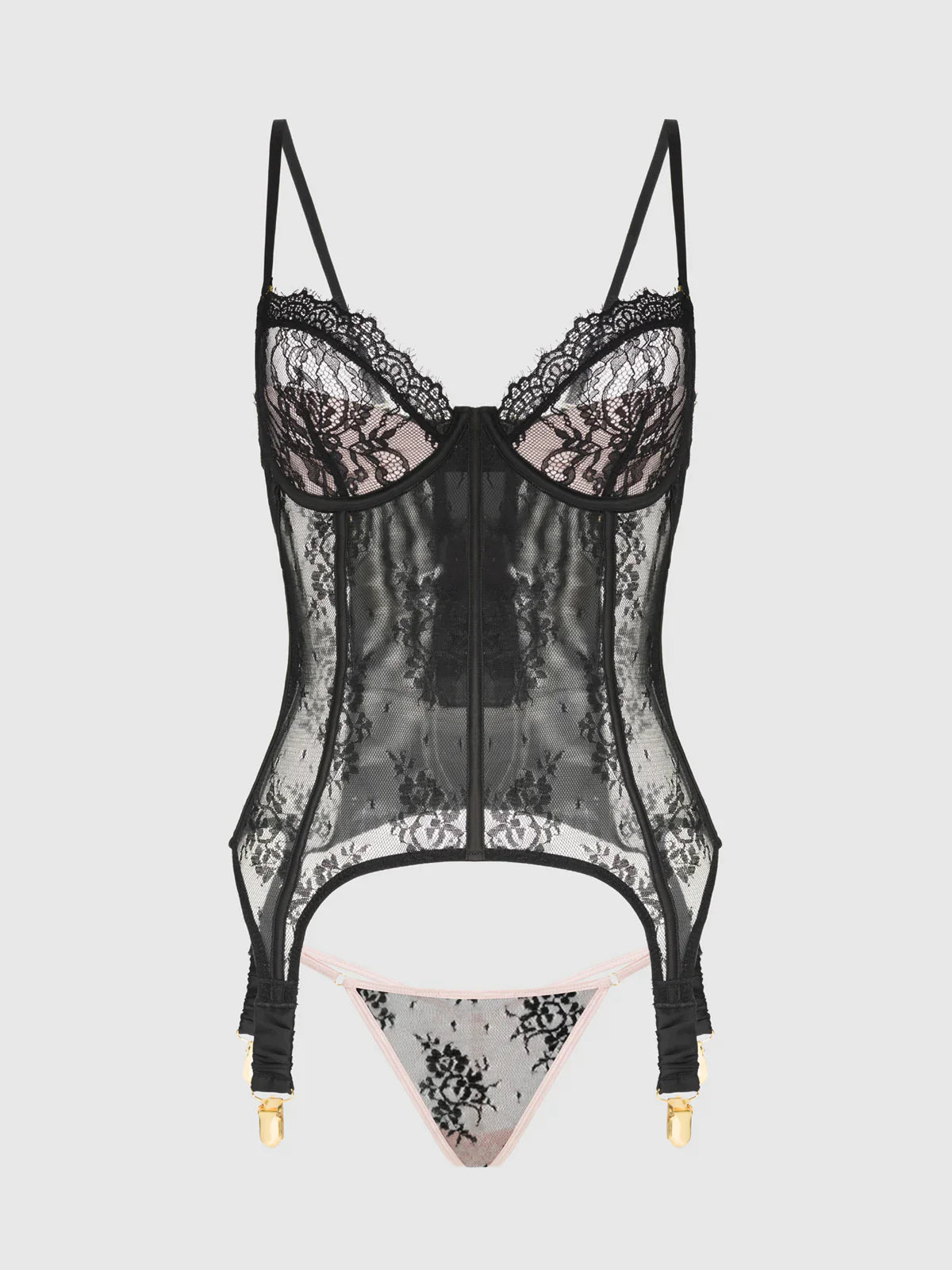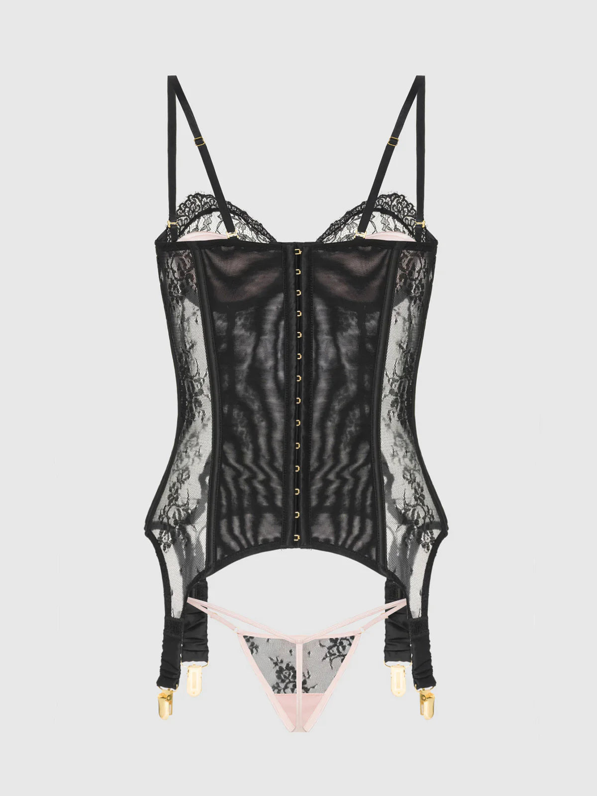 Juliet Satin & Mesh Plunge Underwire Corset Black