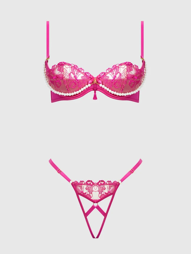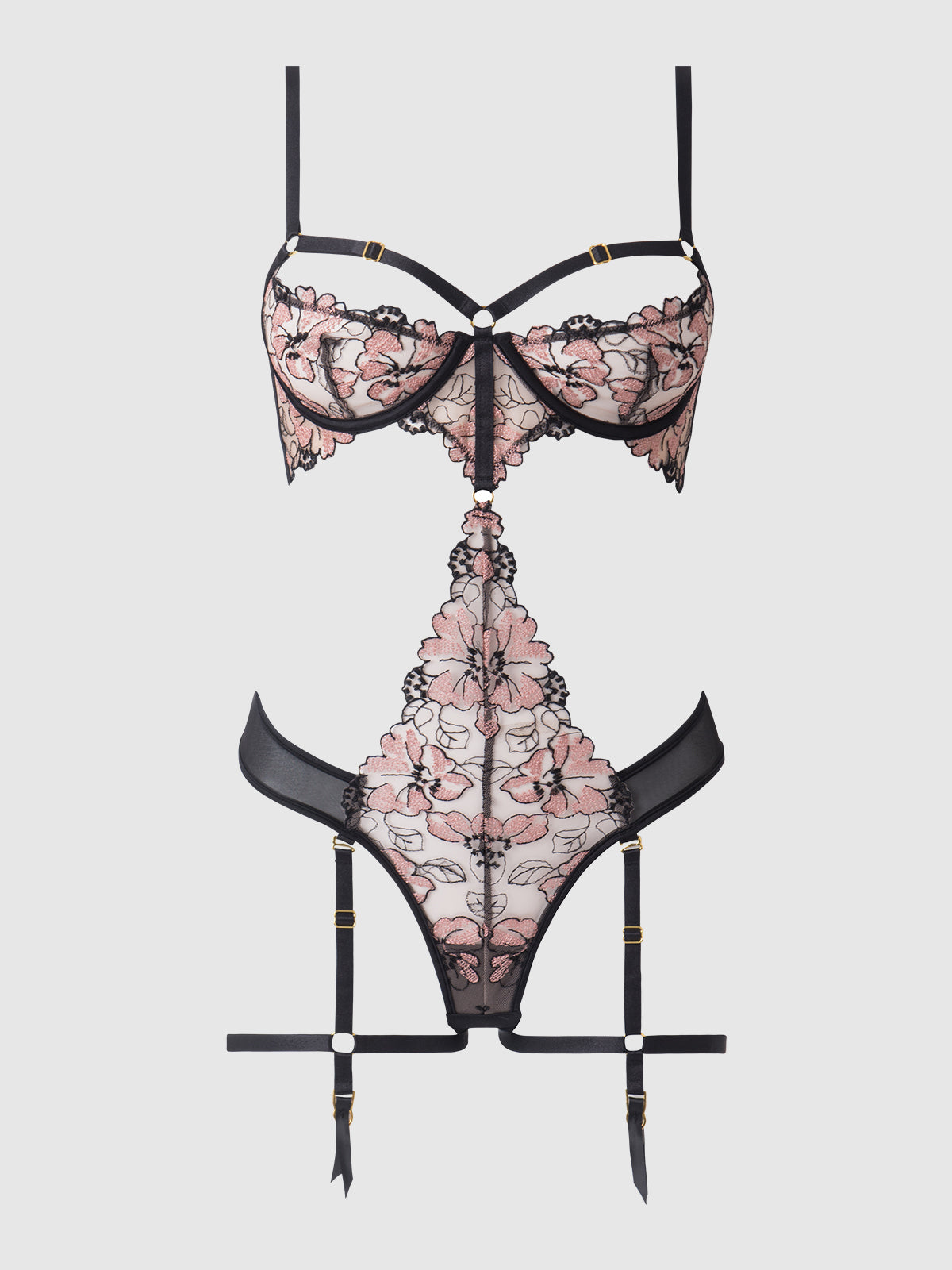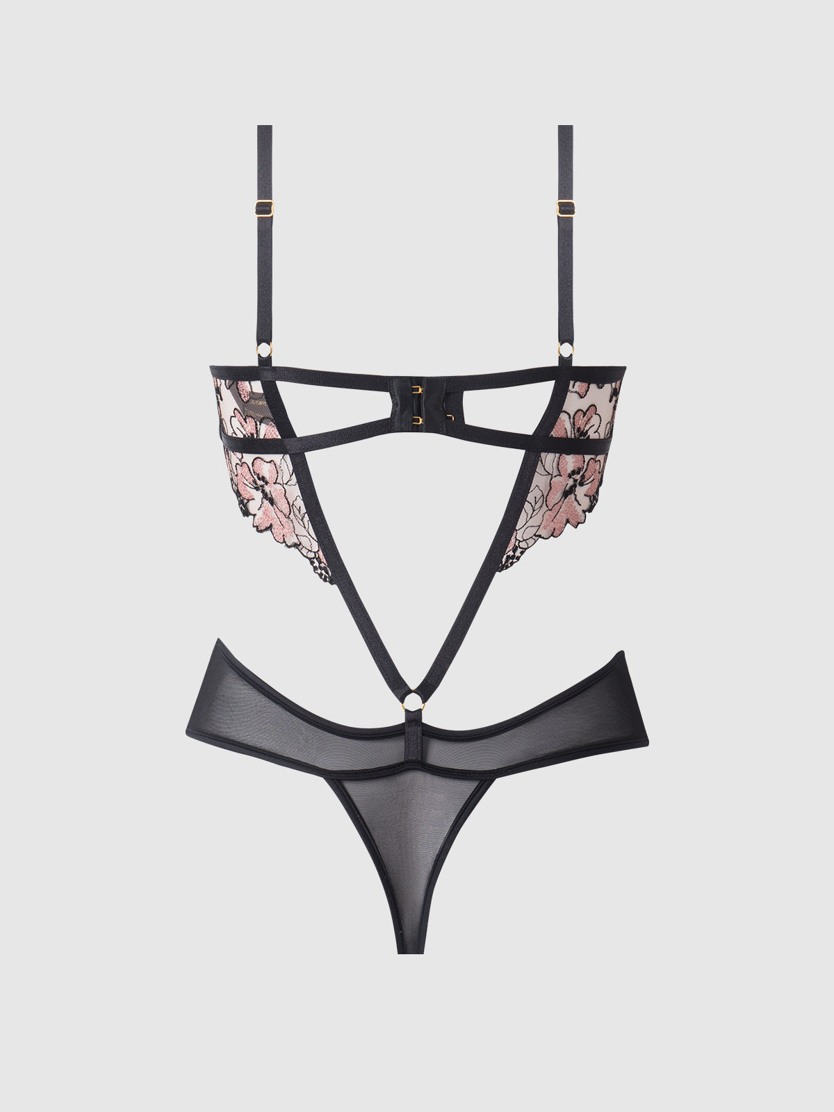 Juliet Satin & Mesh Plunge Underwire Corset Black