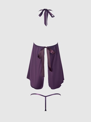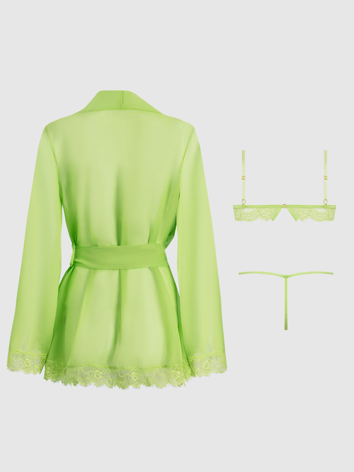 Plus Criss Cross Fishnet Dress with Sleeves & Thong - Green