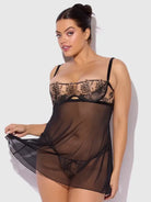 Delilah Embroidered & Mesh Babydoll Set