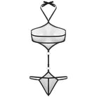Sheer and skimpy black mesh Teddy with g-string backside and adjustable straps.