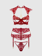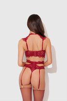 Dezi Lace & Chain Open Cup Bra, Garter & G-String Set