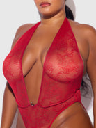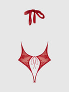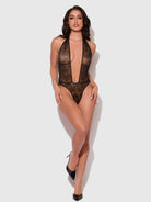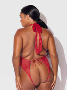 Wrap yourself in the Kiki Lace Halter Teddy, a captivating creation of intricate lace with a daring plunge neckline. This divine piece ties gracefully at the neck and lower back, revealing an enticing picture of bare skin and center back bows that frame your form. Let this teddy enhance your pull with every tie and every glance.
