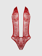 Product Details:- Deep plunging front teddy in semi-sheer floral stretch lace.