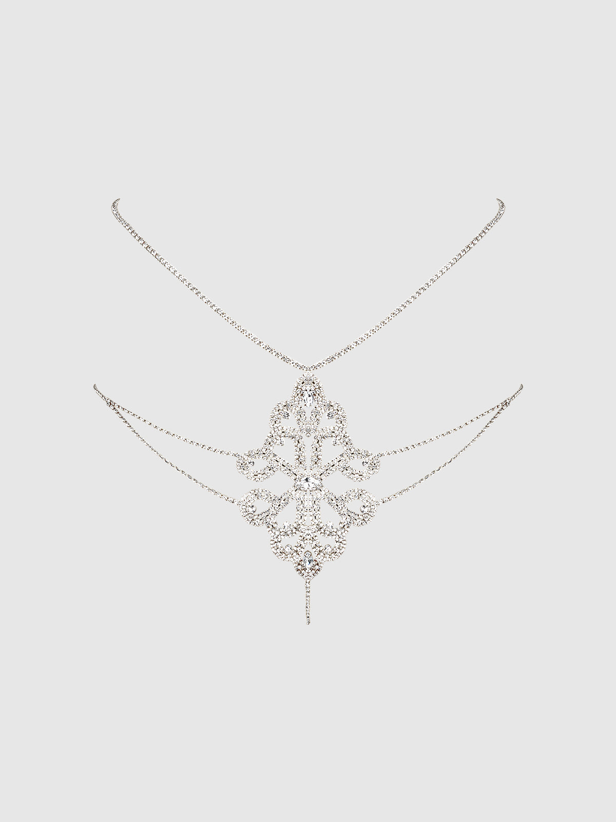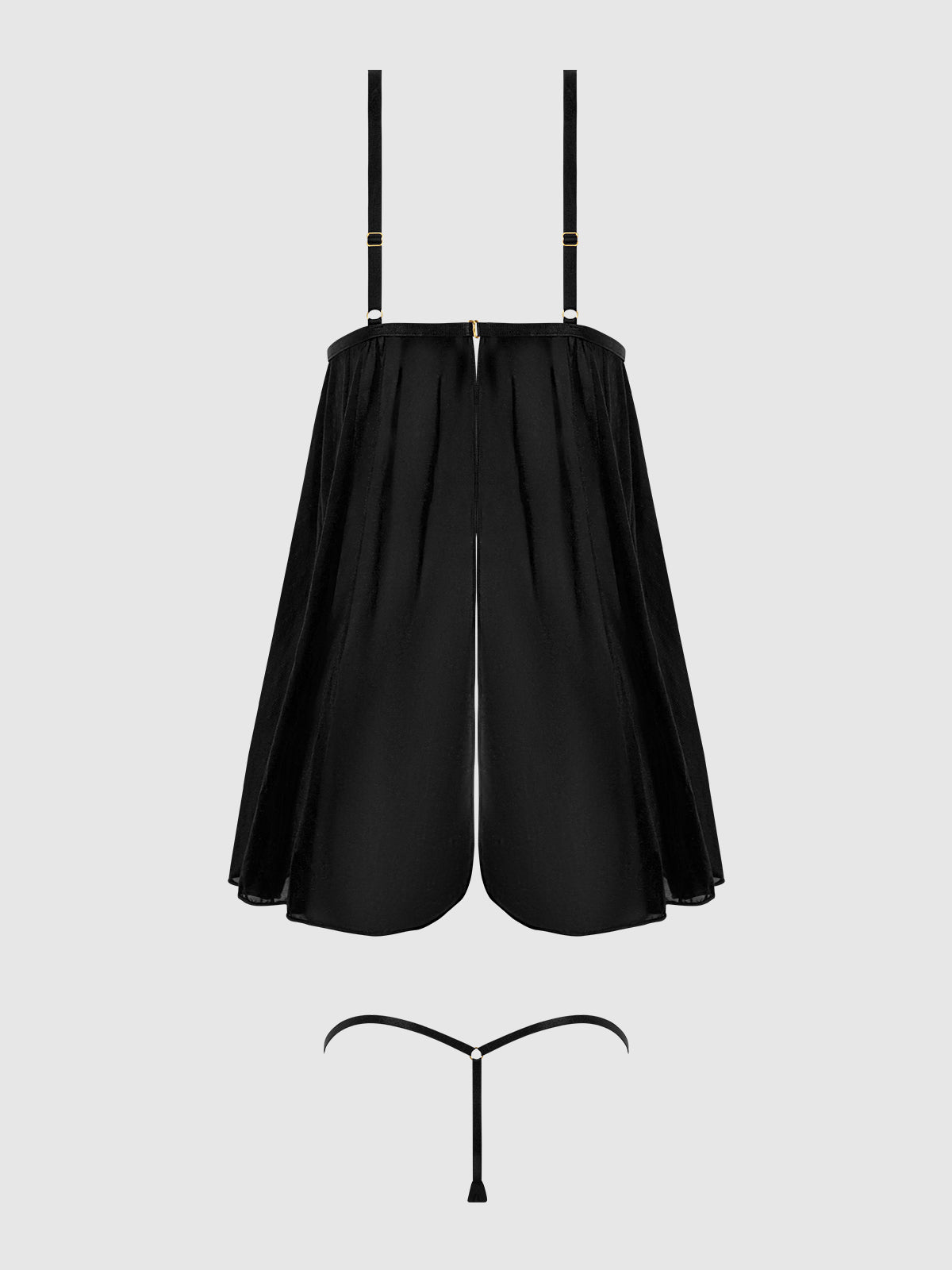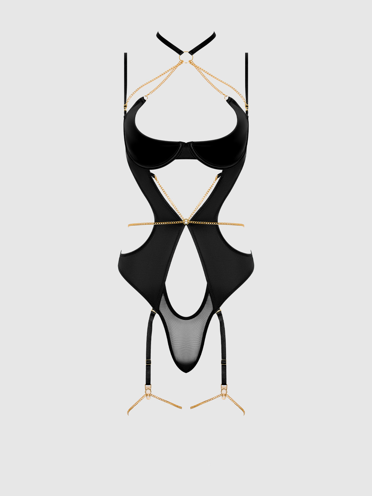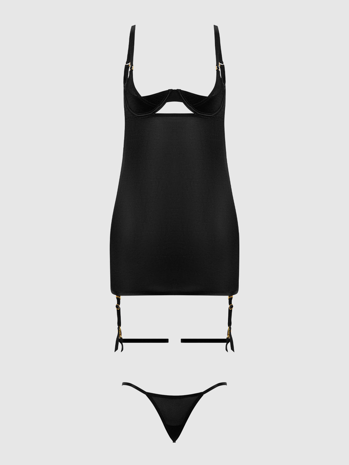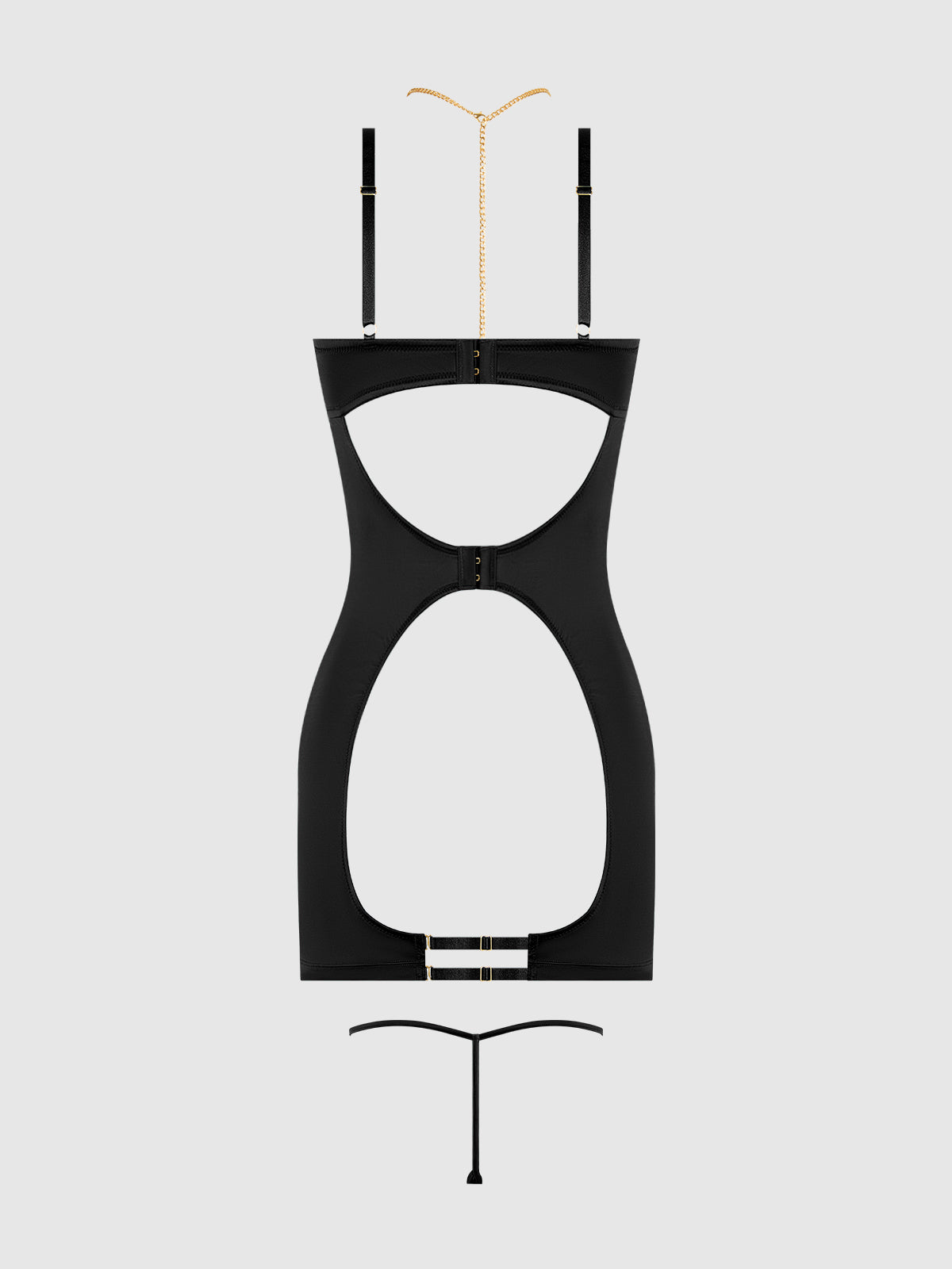 Evangeline Satin & Chain Open Cup & Back Chemise Set Black