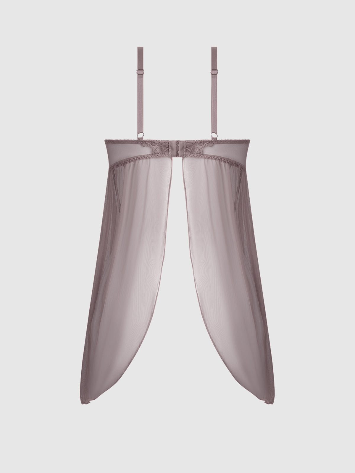 Brigeta Satin & Mesh Corsetted Babydoll Set Mauve