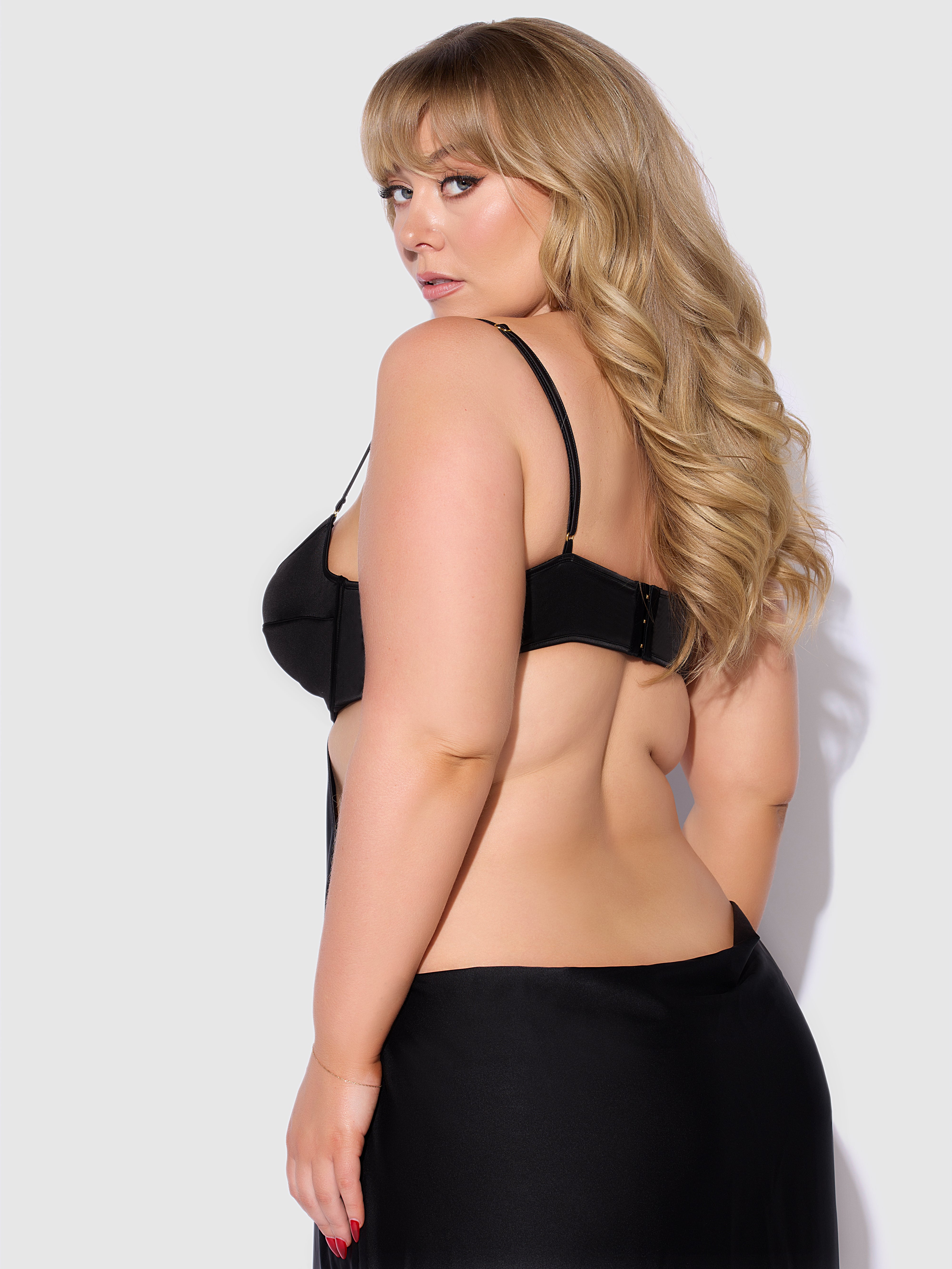 Juliet Satin & Mesh Plunge Underwire Corset Black