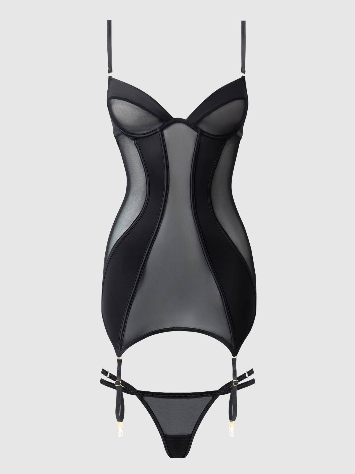 Raquel Mesh & Silky Micro Underwire Chemise & G-String