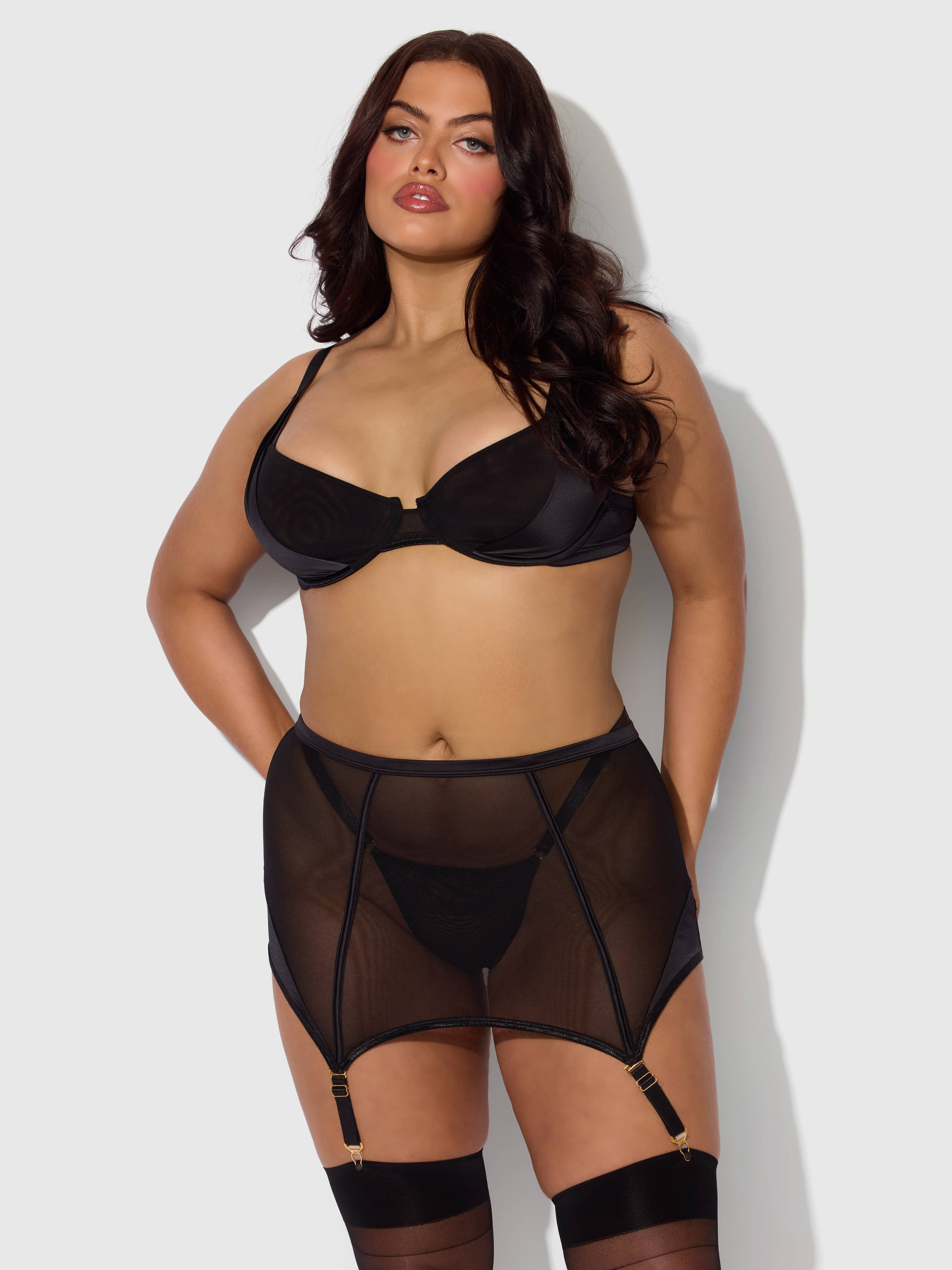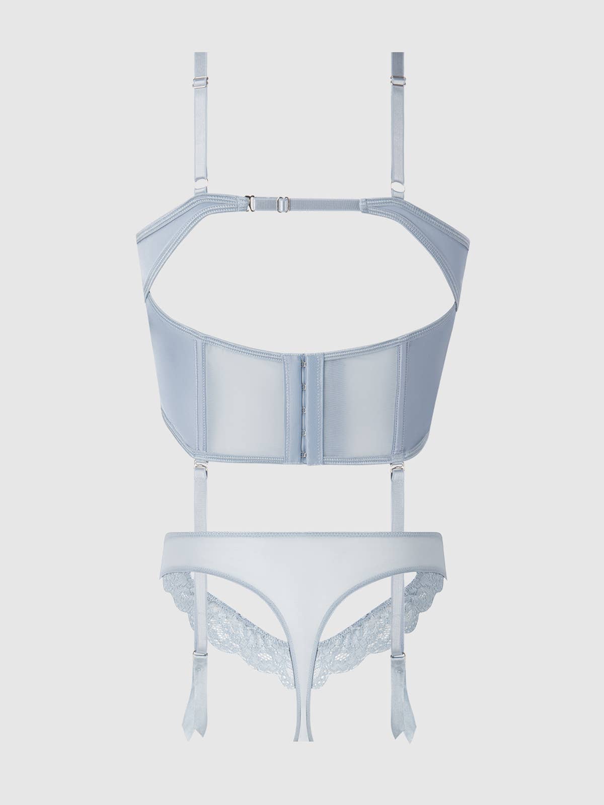 Raquel Mesh & Silky Micro Bra, Garter Skirt & G-String Set