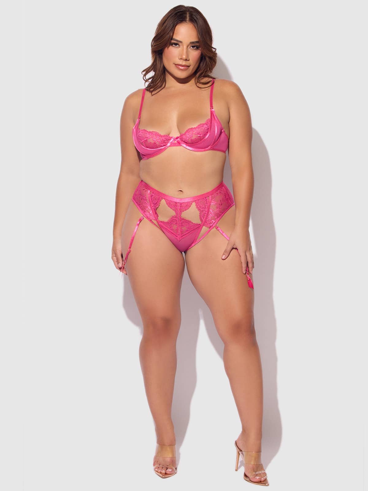 Ashley Lace Open Cup Bra, G-String & Garter Set