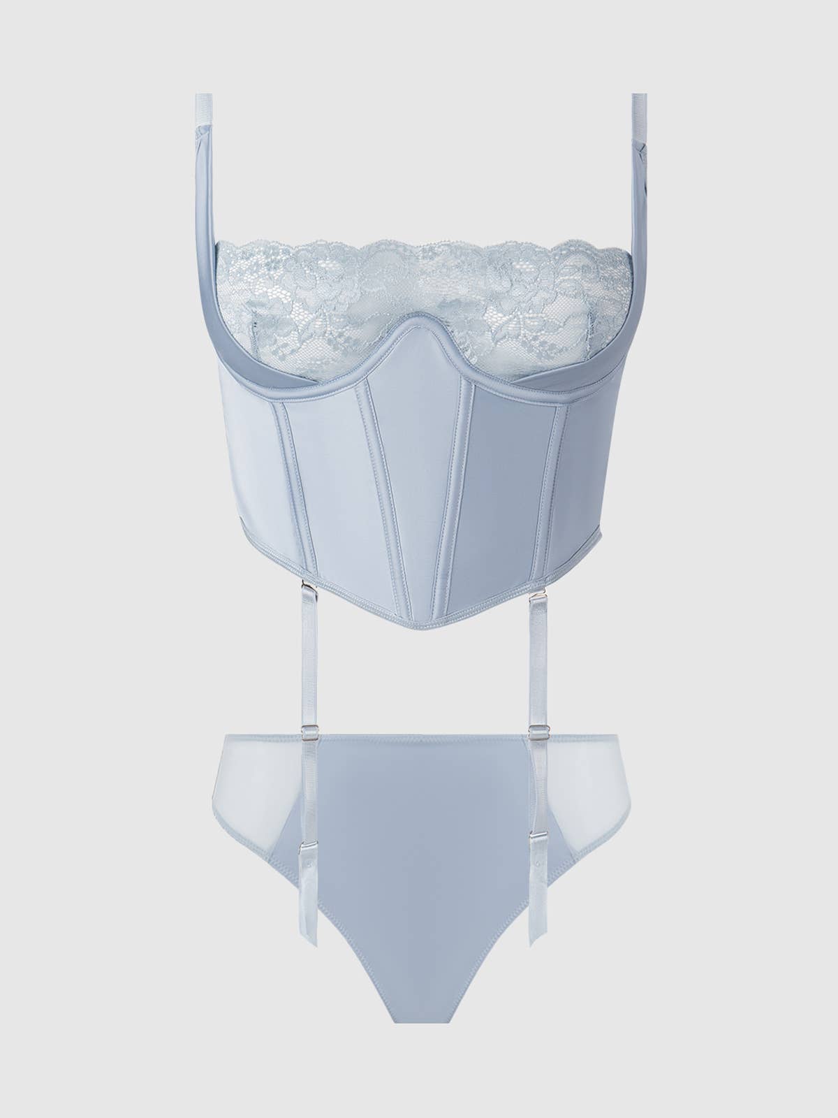 Brigeta Satin Plunge Push Up Bustier & G-String Set