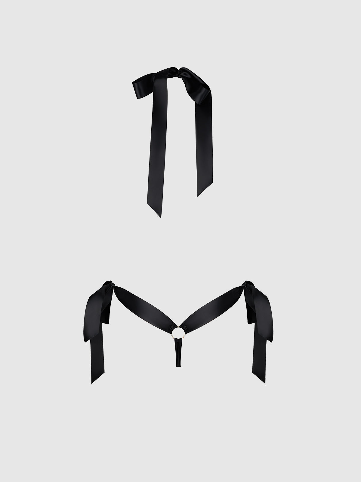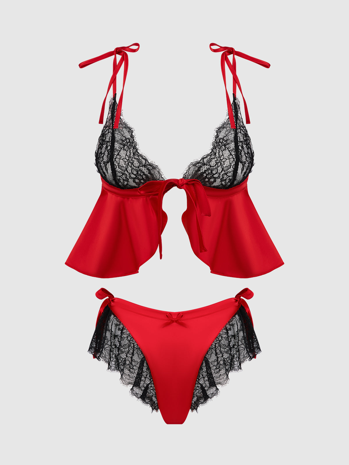 BRIGETA SATIN PLUNGE PUSH UP BRA & TIE SIDE TANGA SET