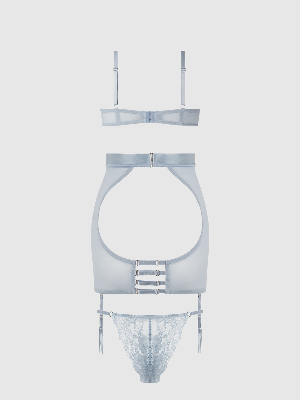 JOCELYN LACE & SATIN BRA, SKIRT & CROTCHLESS G-STRING SET