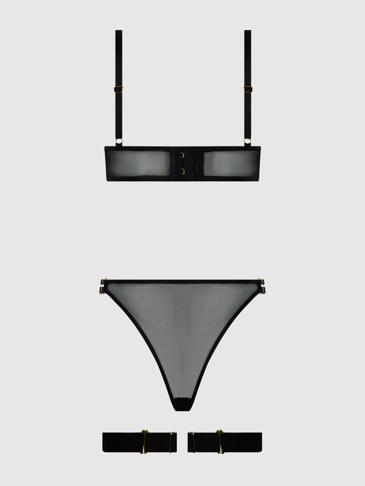 HARPER EMBROIDERED MESH & MICRO LONGLINE BRA & THONG SET