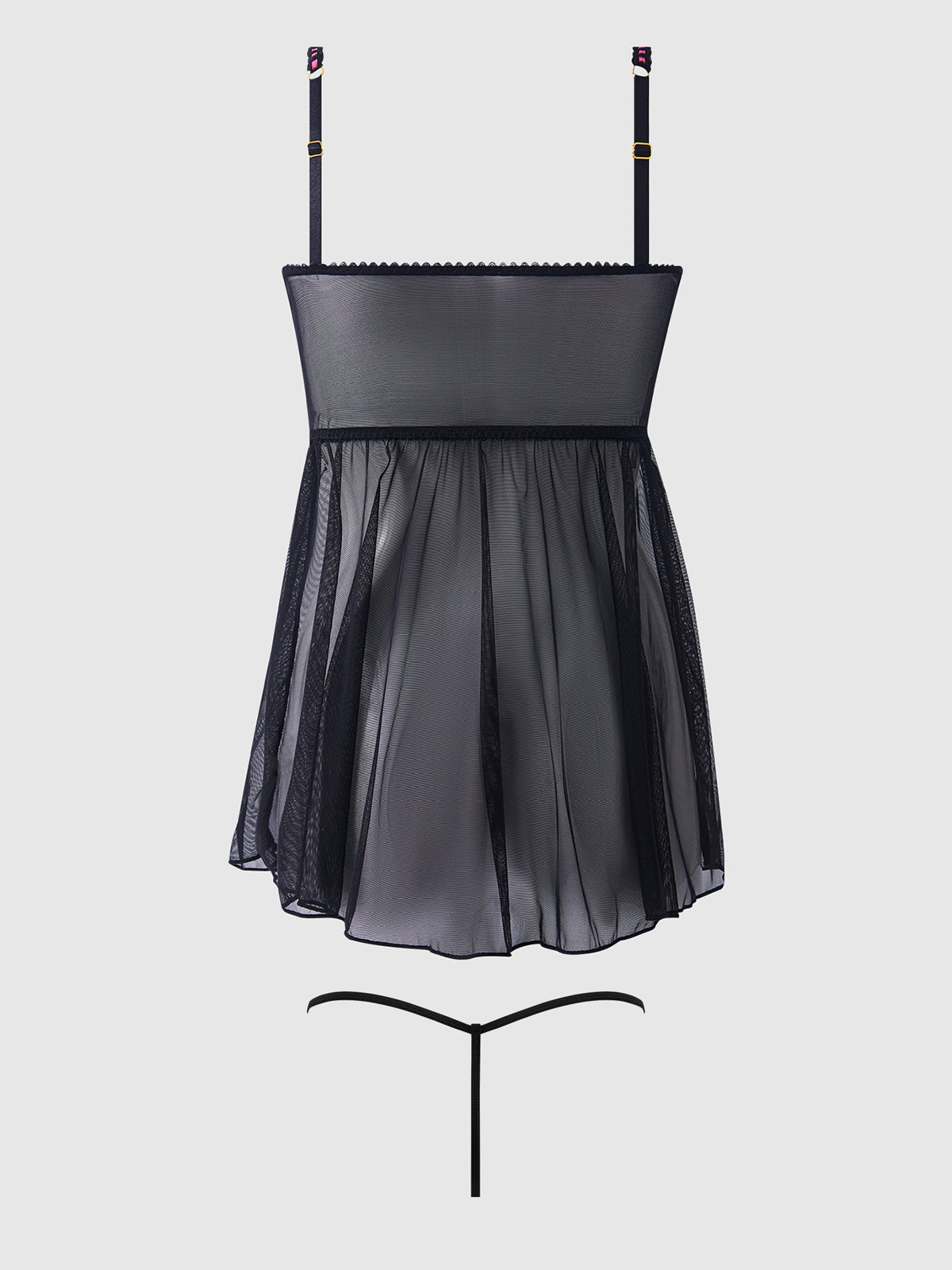 HARPER EMBROIDERED MESH DROP WAIST BABYDOLL & G-STRING SET