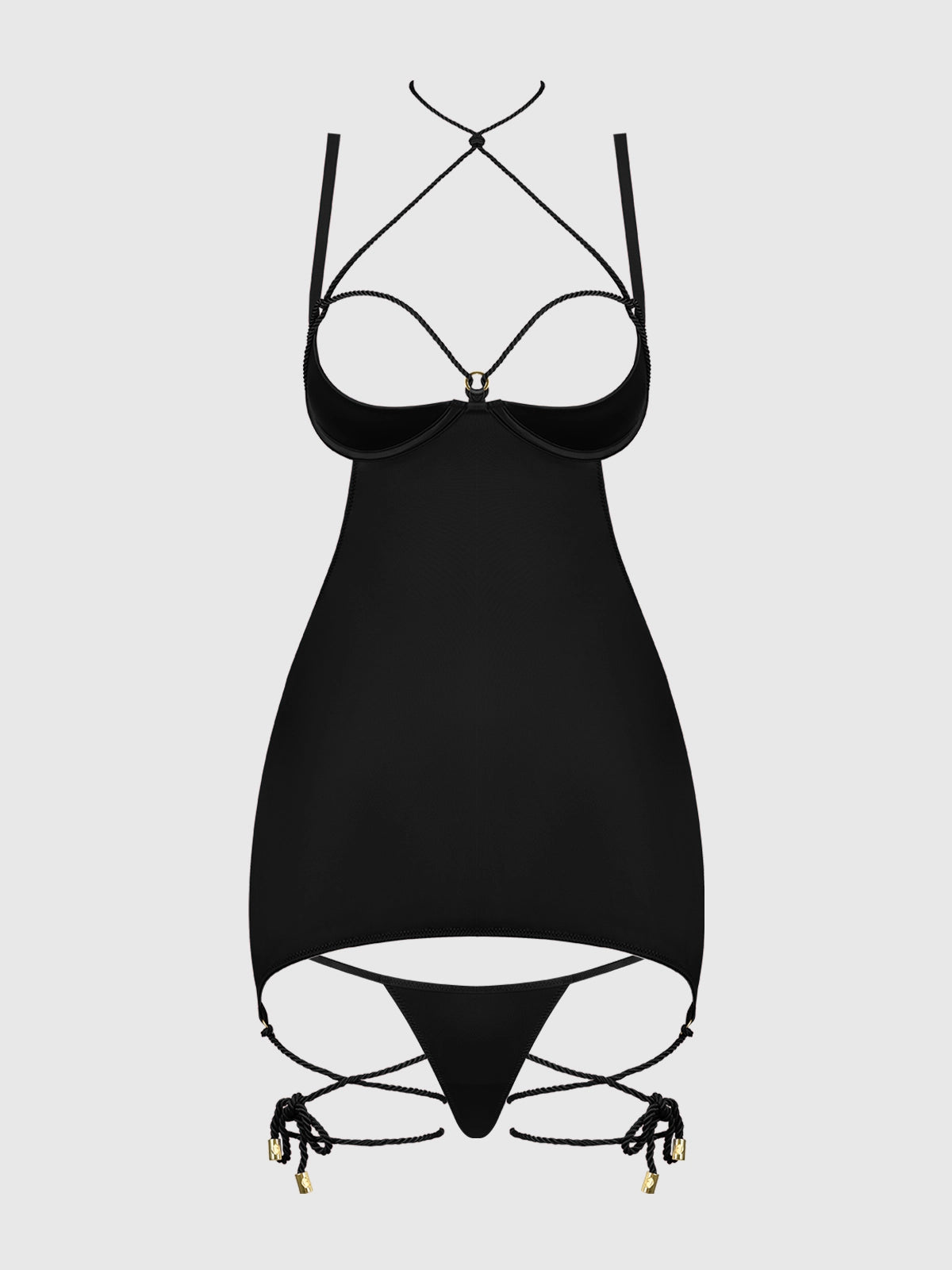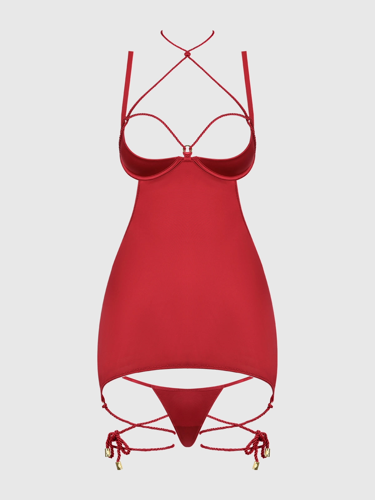 Iryna Silky Micro & Rope Open Back Chemise & G-String Set