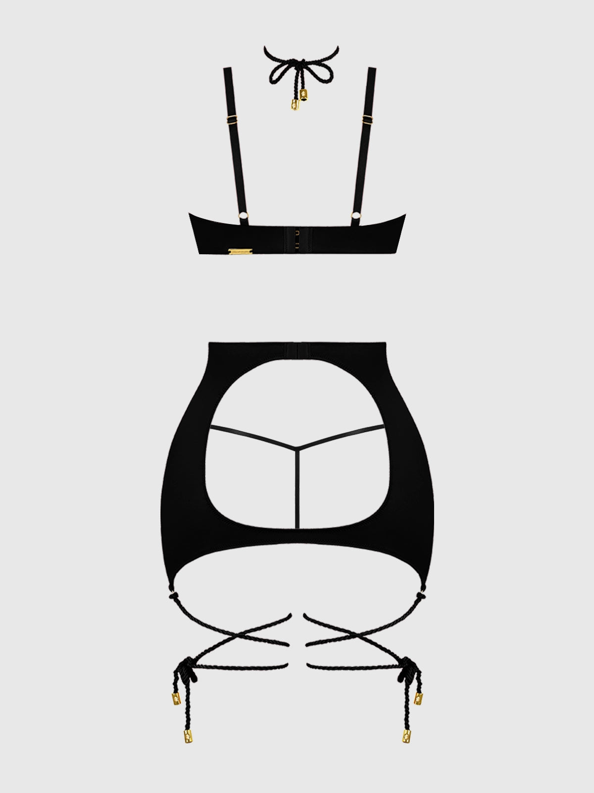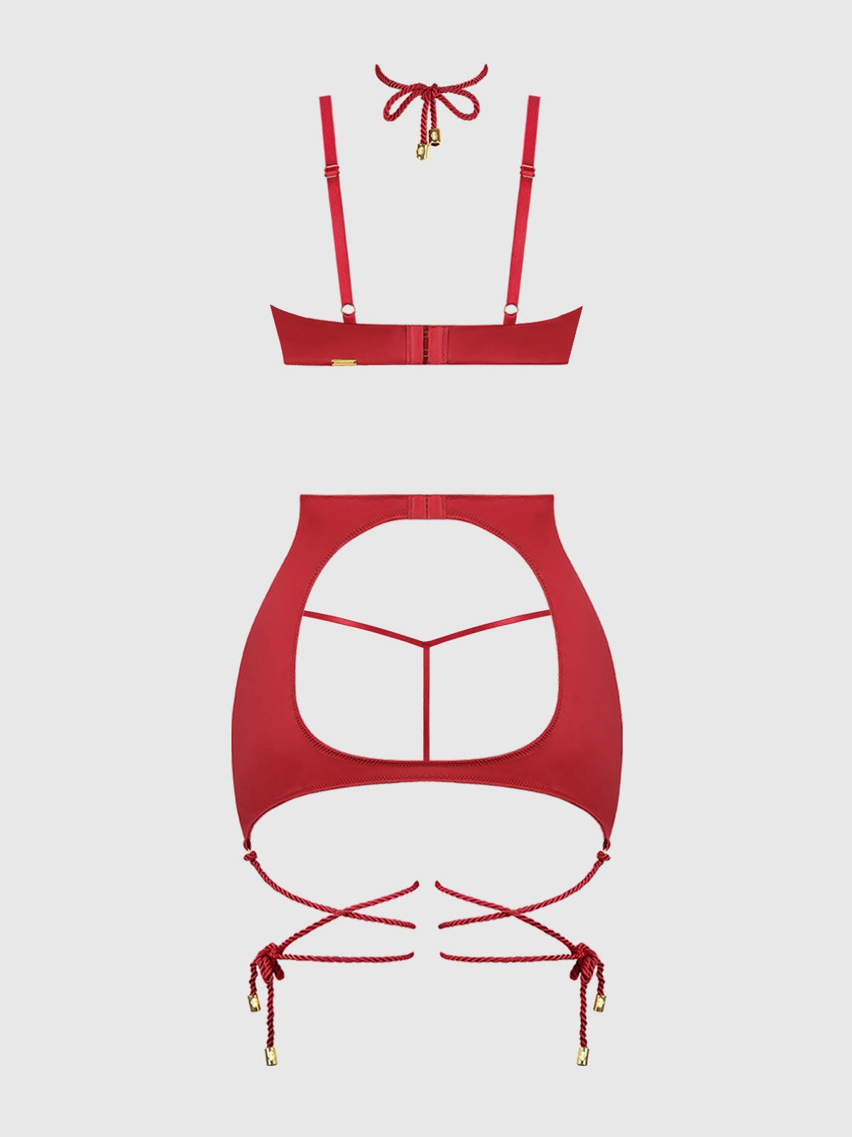 Evangeline Satin & Chain Bra, Thigh Garter & G-String Set