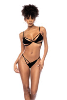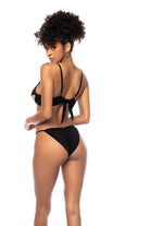 A sophisticated yet sexy 2 piece swimsuit with sheer mesh contrasts, underwire support, adjustable straps and medium coverage scrunchie bottom.