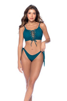 This lace-up two-piece bikini combines bold style with comfort, featuring adjustable straps and a side-tie bottom for a tailored fit.