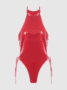 TRINITY PATENT LACE UP HALTER TEDDY
