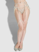 Adorn yourself with the essence of grace and sophistication, the Draped Pearl Garter. This exquisitely crafted lingerie accessory is made of mesmerizing faux pearls, intricately draped to mimic the silhouette of a classic garter belt. Wear the garter with the matching Pearl Bra and Pearl Thong or over your favorite lingerie.