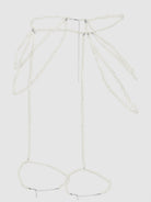 • Adjustable chain and lobster claw closures at waist and thighs.