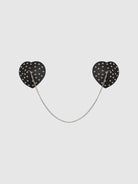 These Studded & Chain Draped Leather-Like Pasties offer danger and desire for vixens who like to play. Heart silhouettes are sprinkled with all-over studs, while cascading glimmer chains add mesmerizing movement. Designed to break hearts and maybe a few rules.