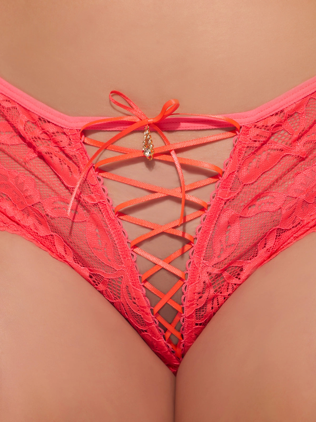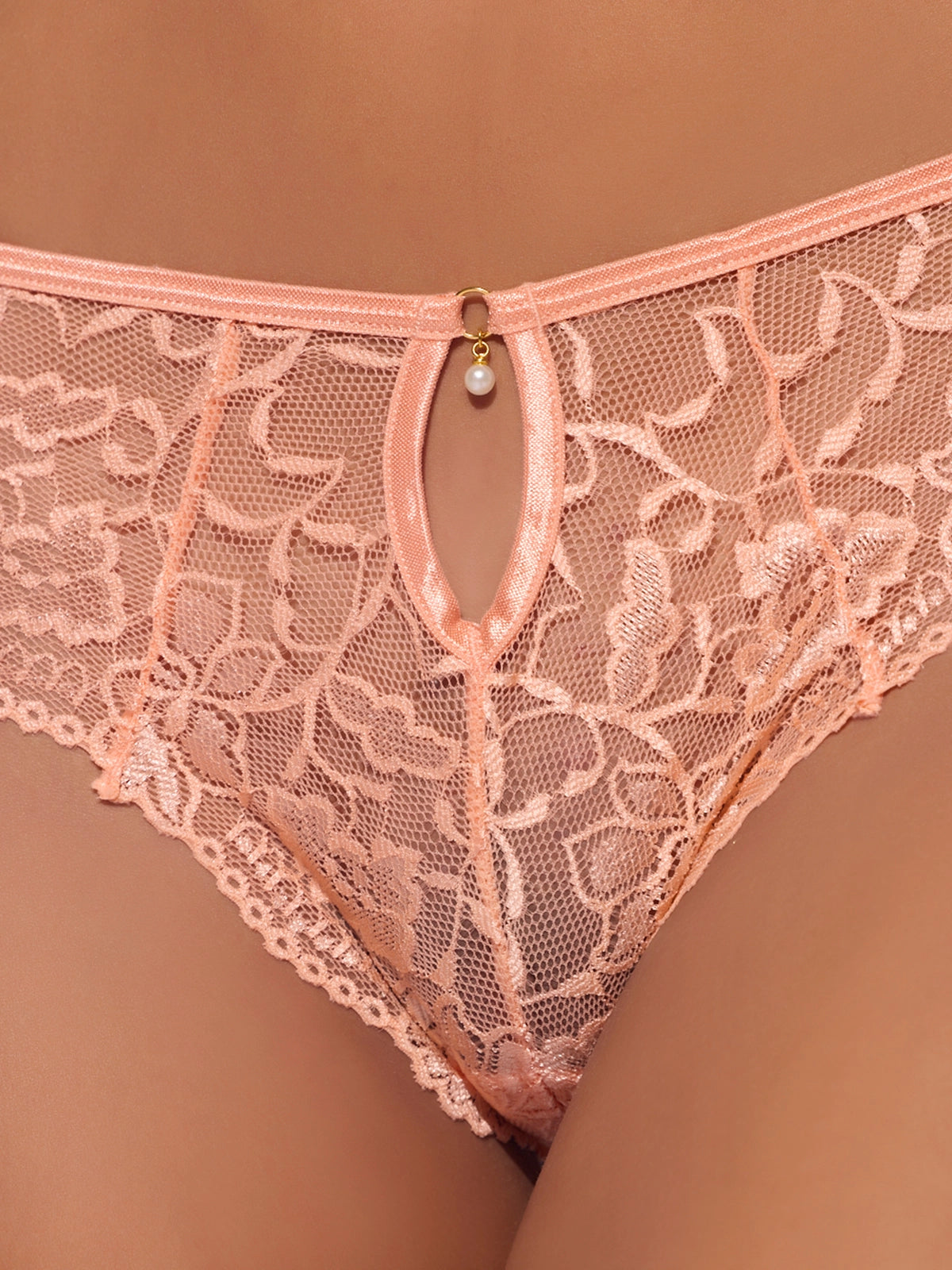 Lara Lace & Liquid Satin Pearl Crotchless Hipster