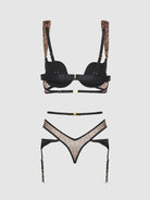Ignite your fiercest side with the Chantal Deep Plunge Push-Up Bra & Gartered Crotchless Tanga Set. Featuring maximum push-up support and ultra-seductive mesh, this set delivers unforgettable allure and daring confidence.